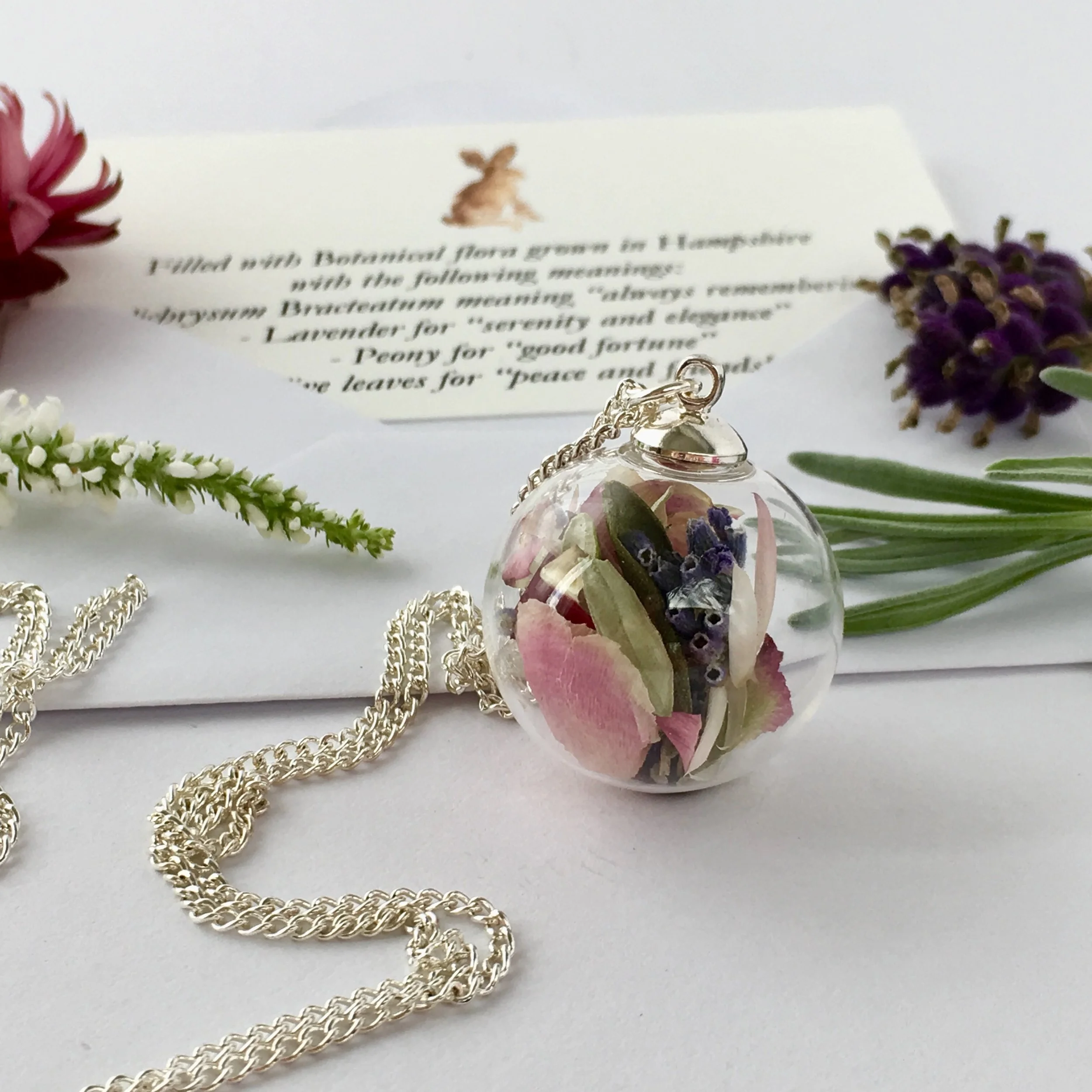 To dry your flowers for you and put them in a necklace these will start from £150 and includes an 18” sterling silver chain and UK P&P.