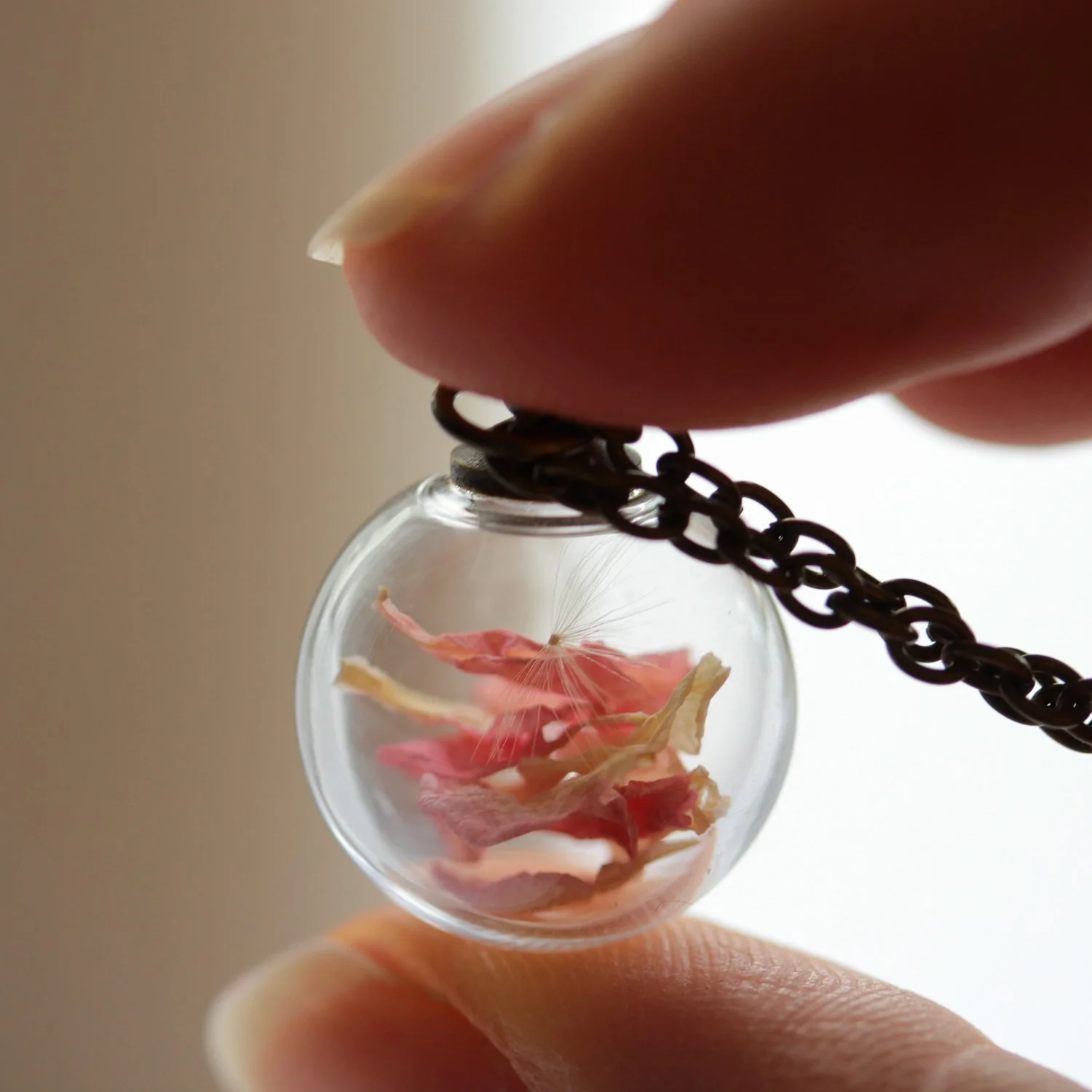Handblown glass globe: approx 16mm (each one varies slightly)